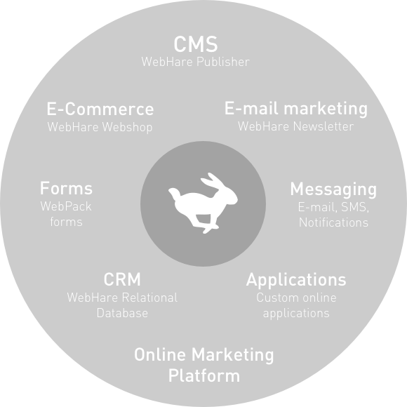 WebHare is much more than a CMS - it's a development platform with powerful components, all seamlessly integrated. We create user friendly solutions for complex challenges. WebHare can communicate with external ERP and CRM systems, making it a powerful, stable and flexible platform for online solutions. Wether it's for one or more websites, intranet, online applications, webshops or an entire online marketing platform - it's all possible with WebHare!